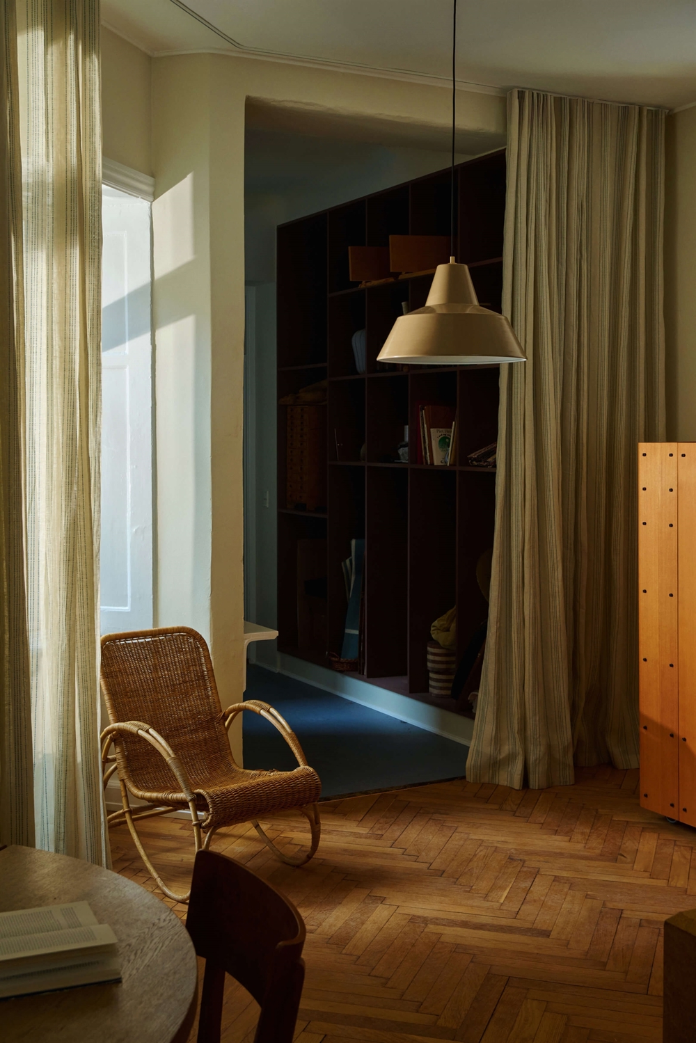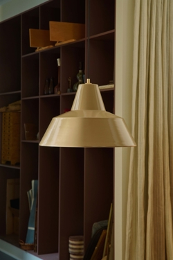 Workshop ist eine Serie klassischer Werkstattlampen, ursprünglich 1951 von Axel Wedel-Madsen entworfen. Diese Jubiläumsausgabe in Tonfarbe, eingeführt 2026, feiert 75 Jahre der ikonischen Leuchte. Das klassische Design erhält eine veredelte massive Messingkappe mit Jubiläumsemblem, während der Schirm anlässlich des Jubiläums in drei neuen Farben in den Größen W3 und W4 eingeführt wurde - chocolate brown, butter yellow und earth clay.