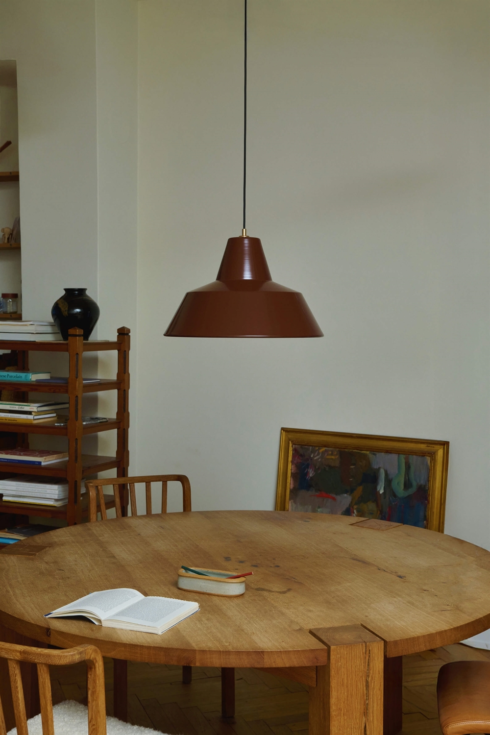 Workshop ist eine Serie klassischer Werkstattlampen, ursprünglich 1951 von Axel Wedel-Madsen entworfen. Diese Jubiläumsausgabe in einem braunen Farbton aus dem Jahr 2026 feiert 75 Jahre der ikonischen Leuchte. Das klassische Design wurde mit einer veredelten, massiven Messingkappe mit Jubiläumsemblem aufgewertet, während der Schirm anlässlich des Jubiläums in drei neuen Farben in den Größen W3 und W4 eingeführt wurde - chocolate brown, butter yellow und earth clay.
