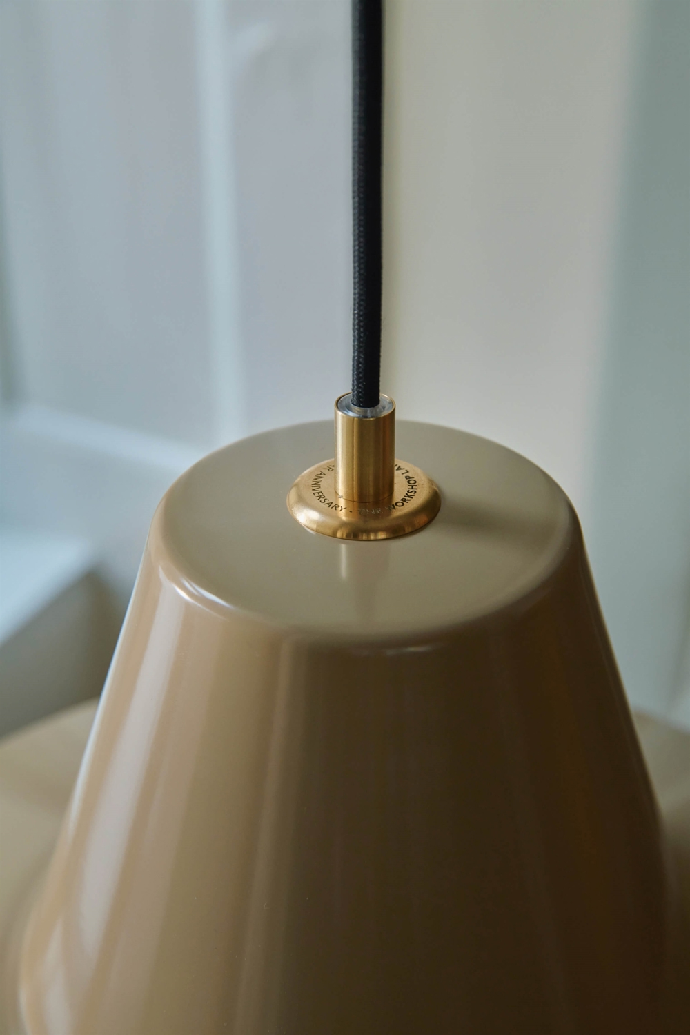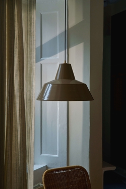 Workshop ist eine Serie klassischer Werkstattleuchten, ursprünglich 1951 von Axel Wedel-Madsen entworfen. Diese Jubiläumsausgabe in Tonfarbe, eingeführt 2026, feiert 75 Jahre der ikonischen Leuchte. Das klassische Design erhielt eine veredelte massive Messingkappe mit Jubiläumsemblem, während der Schirm anlässlich des Jubiläums in drei neuen Farben in den Größen W3 und W4 eingeführt wurde - chocolate brown, butter yellow oder earth clay.