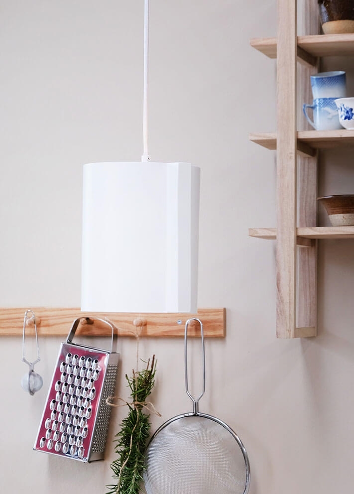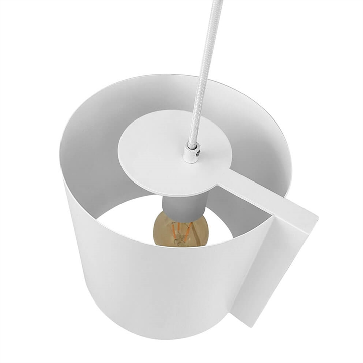 Die Pendelleuchte ist in zwei Größen und in den Farben matt schwarz und warmweiß erhältlich. Sie ist auch in einer schrägen Variante in der Farbe matt grau erhältlich.