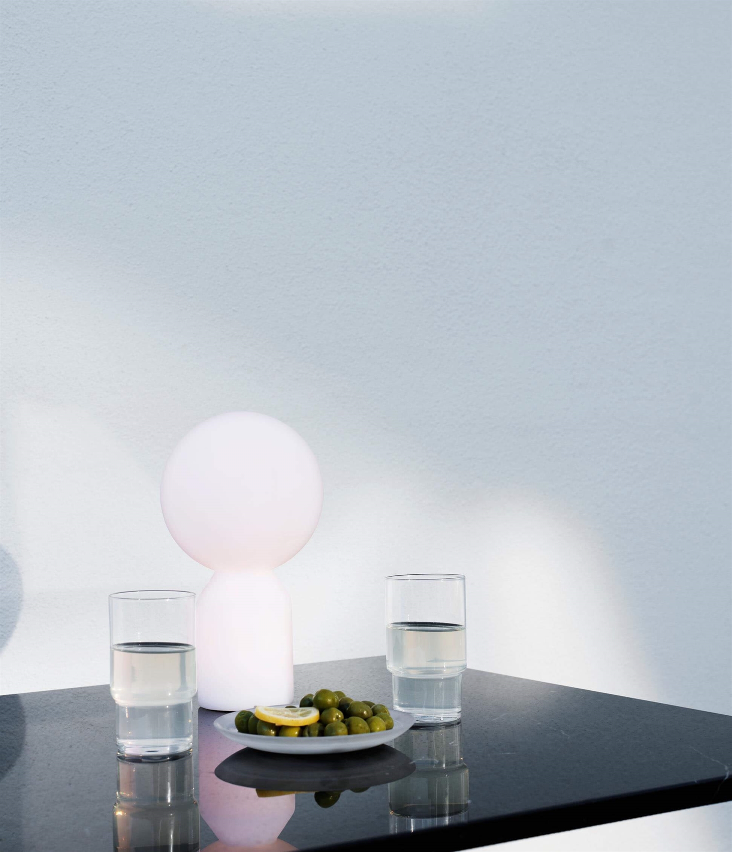 Die wiederaufladbare Yo Lampe kombiniert ein skulpturales Design mit praktischer Funktionalität als tragbare Akku-Lampe. Yo ist leicht mitzunehmen und kann sowohl drinnen als auch draußen verwendet werden, wo ihr zylindrischer Sockel und der kugelförmige Schirm ein auffälliges Element in jedem Raum oder auf der Terrasse sein werden.