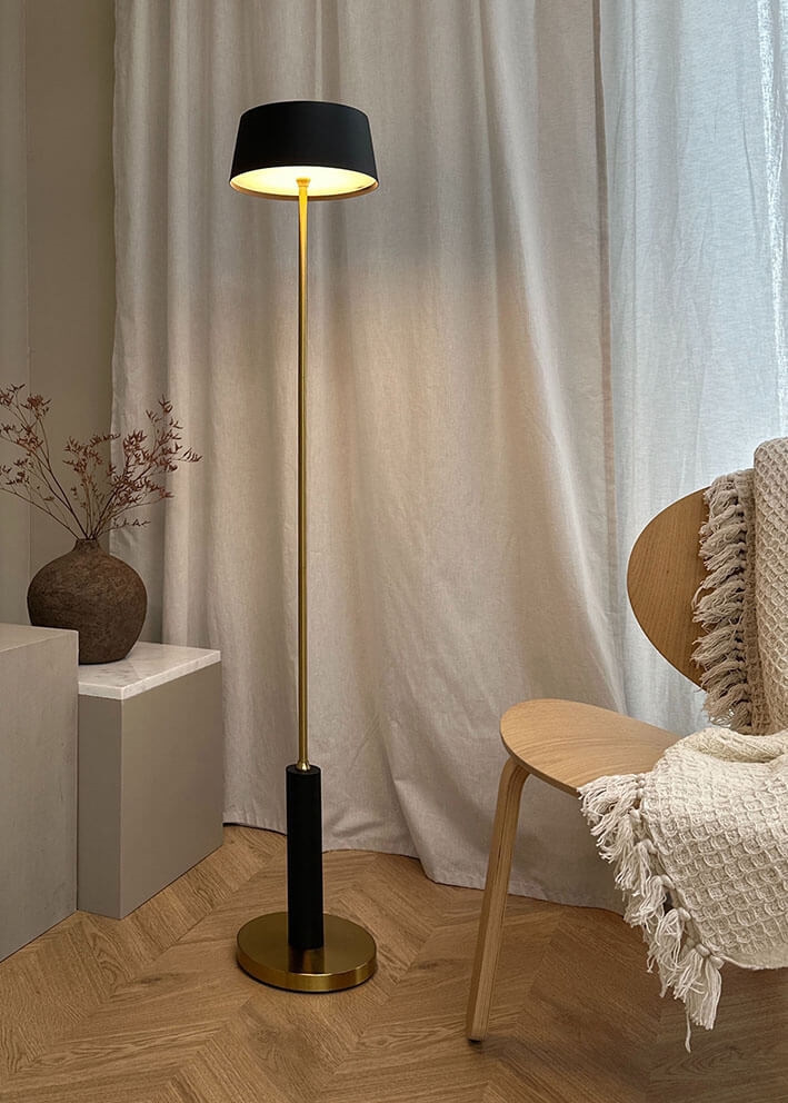 Dyberg Larsen Yoyo Batterielampe / Stehlampe, schwarz/messing