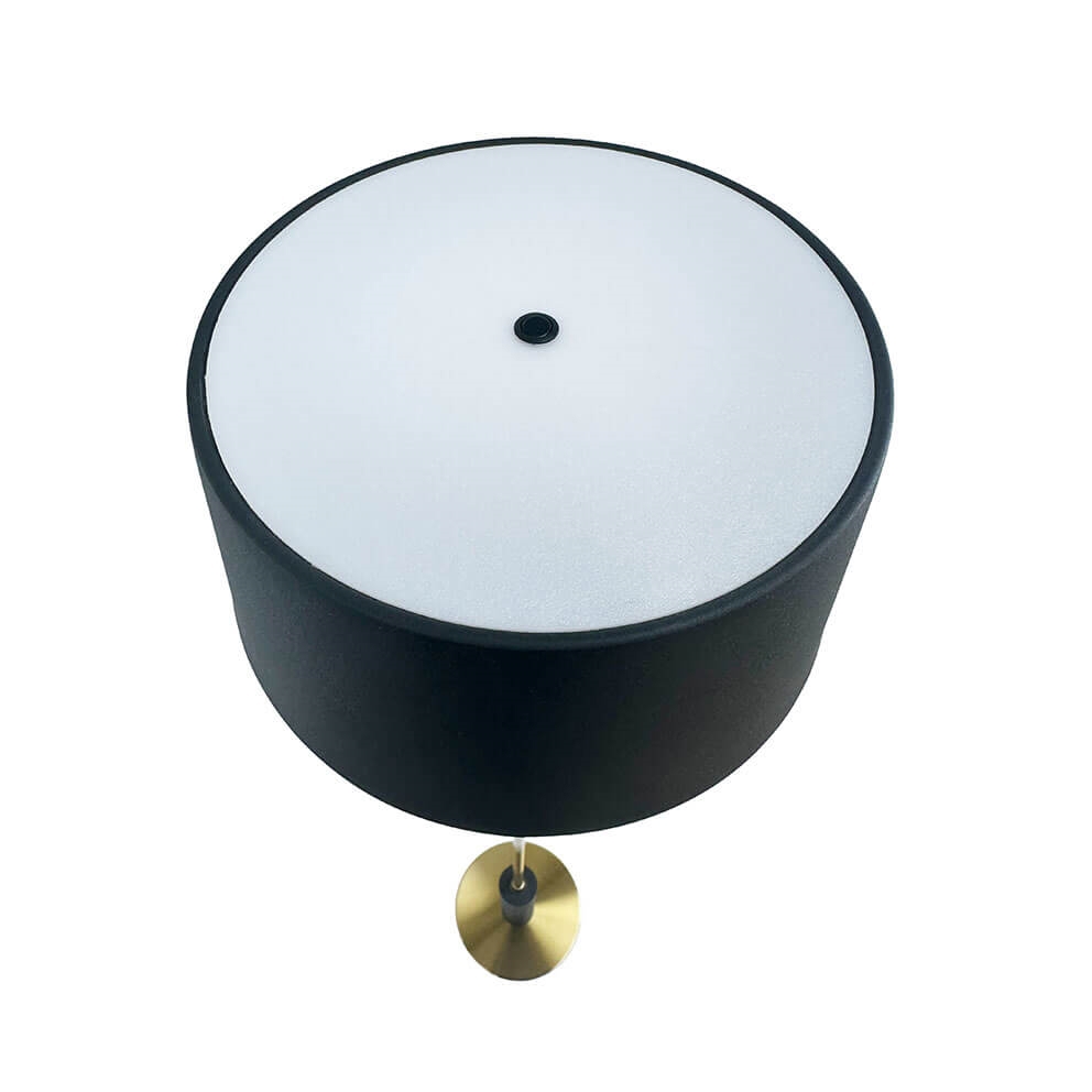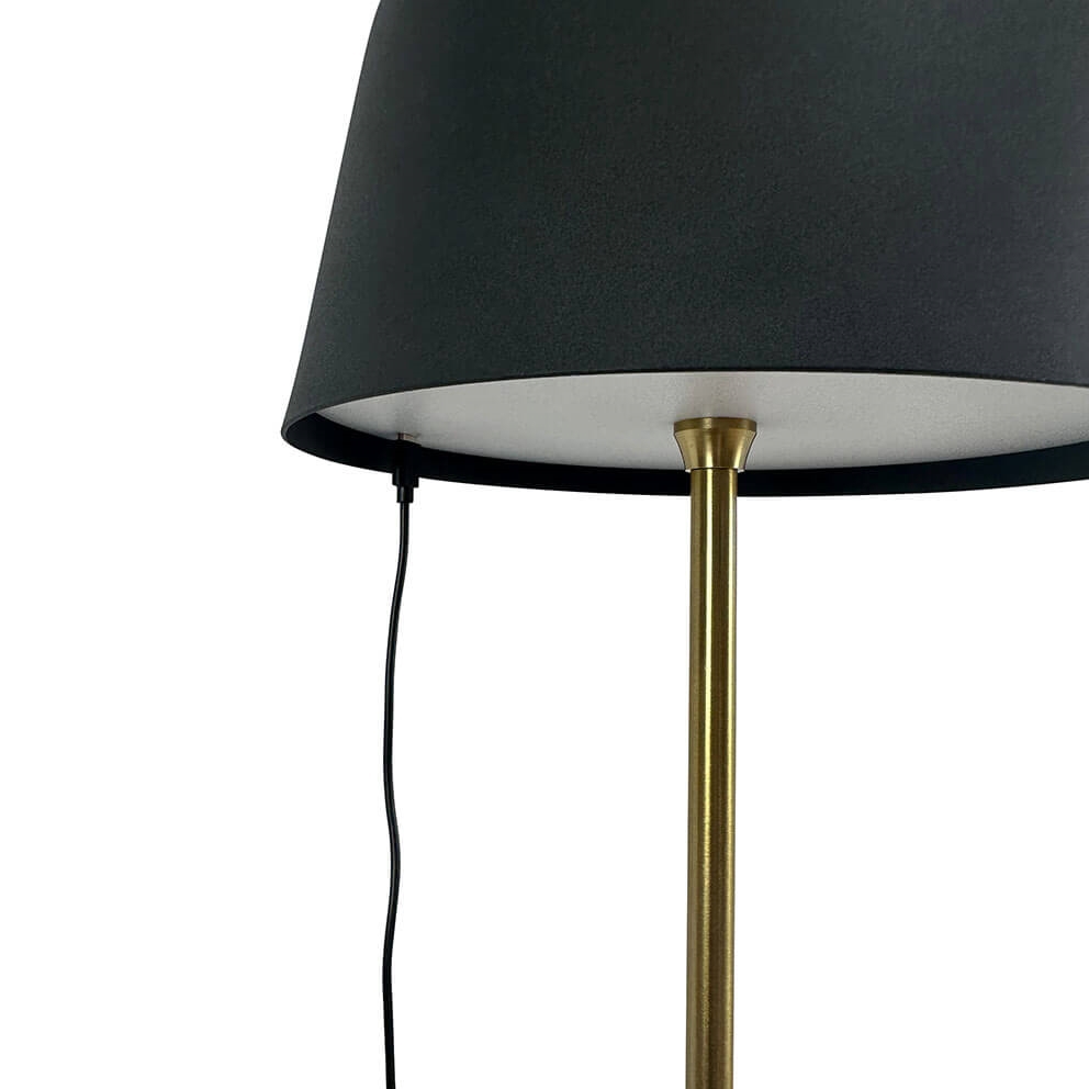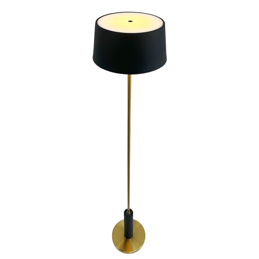 Die wiederaufladbare Yoyo Stehlampe ist mit ihrem schlanken Design perfekt für viele Orte mit begrenztem Platz. Der Schirm der Batterielampe ist aus gebürstetem schwarzem Metall gefertigt, und Basis und Lampenstange sind aus Messing.